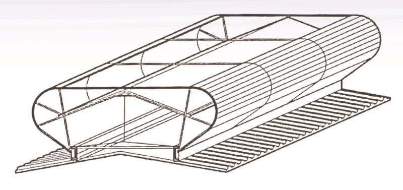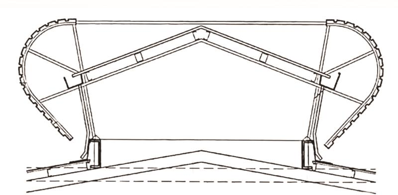 圆弧外观,其结构简单合理,侧面设计成圆弧形,有效减少风压阻力,由骨架、外围护板(挡风板)、挡雨板、排水槽、泛水板等部分组成,启闭式可加装启闭机构和筏板,有效防止空气回灌至室内,适用于仓库、车间等工业厂房与公共建筑。骨架部分通常采用热镀锌角钢、方管、C型钢等型材,外护板和挡雨板部分采用压型钢板铺设,如有采光要求挡雨板采用玻璃纤维聚酯采光板(FRP)。3型通风气楼为我司主要推荐型,制作频率高、技术完善、工艺精良、防水性能好。